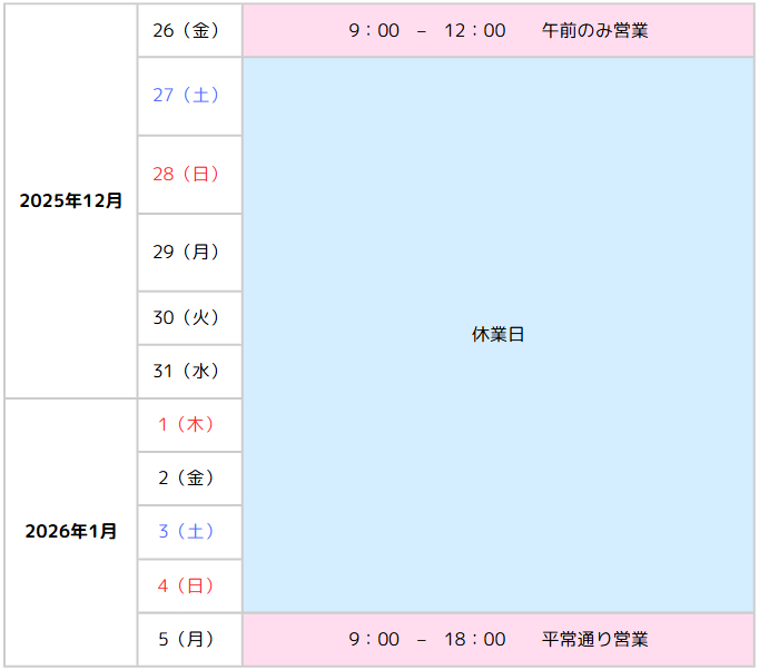 【サポート業務休業】年末年始